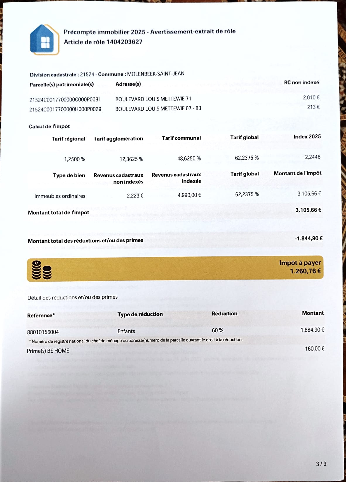 Précompte immobilier : 3.105,66 €
